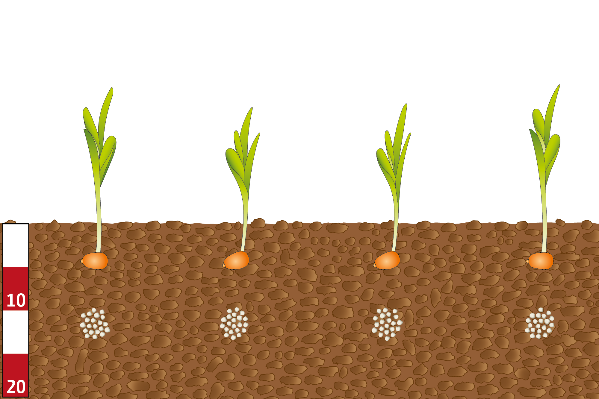 Eine Einzelkorn-Sämaschine Precea mit FertiSpot für granulierten Dünger verfügt genau wie eine klassische Einzelkorn-Sämaschine über einen Düngerbehälter mit Düngerdosierung. Die Dosierung regelt die gewünschte Ausbringmenge pro ha. Diese kann auch über Applikationskarten variabel gestaltet sein. In Verbindung mit einer Einzelreihenschaltung für den Dünger kann dieser über Section Control in Keilen und am schrägen Vorgewende je Reihe abgeschaltet werden.