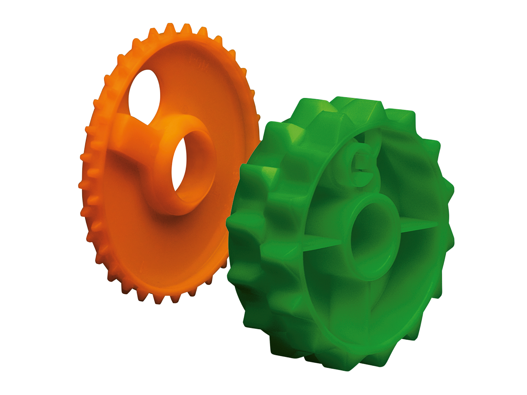 Die Kombination von Feinsärad (orange) und Normalsärad (grün) ermöglicht, Saatmengen von 1,5 kg/ha bis 400 kg/ha ohne Säradwechsel auszubringen. Die Umstellung erfolgt mit wenigen Handgriffen.
