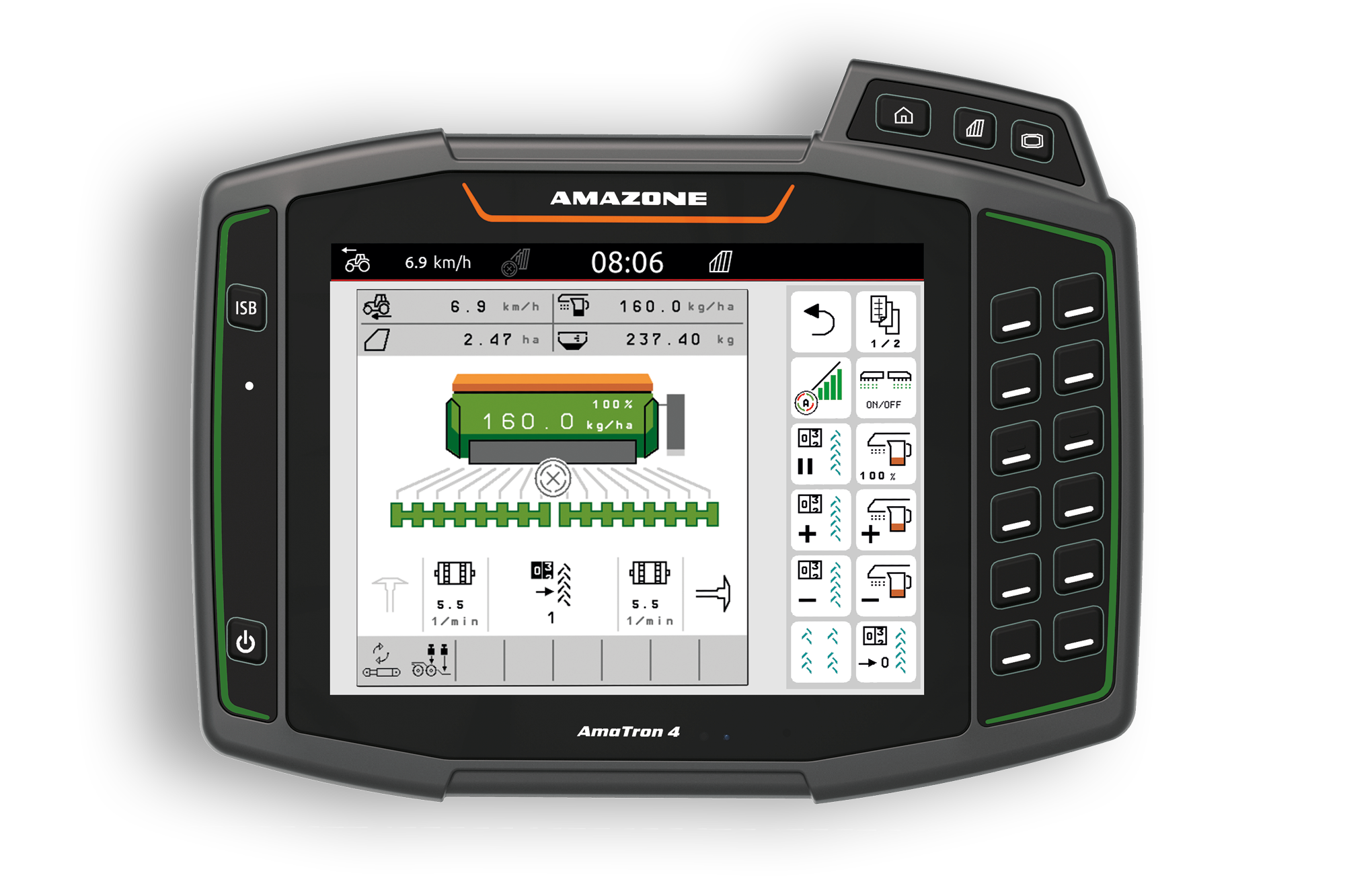 Das ISOBUS-Bedienterminal AmaTron 4 von AMAZONE bietet einen Funktionsumfang oberhalb des ISOBUS-Standards: