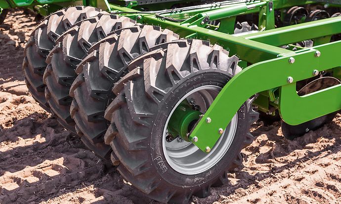 Der vorlaufende Zwischenachspacker T-Pack U rollt die Fläche vor dem Scheibenfeld ab. Dadurch wird der Boden vor der Maschine noch einmal zusätzlich rückverfestigt. Dies ist besonders auf leichten Böden von Vorteil.
