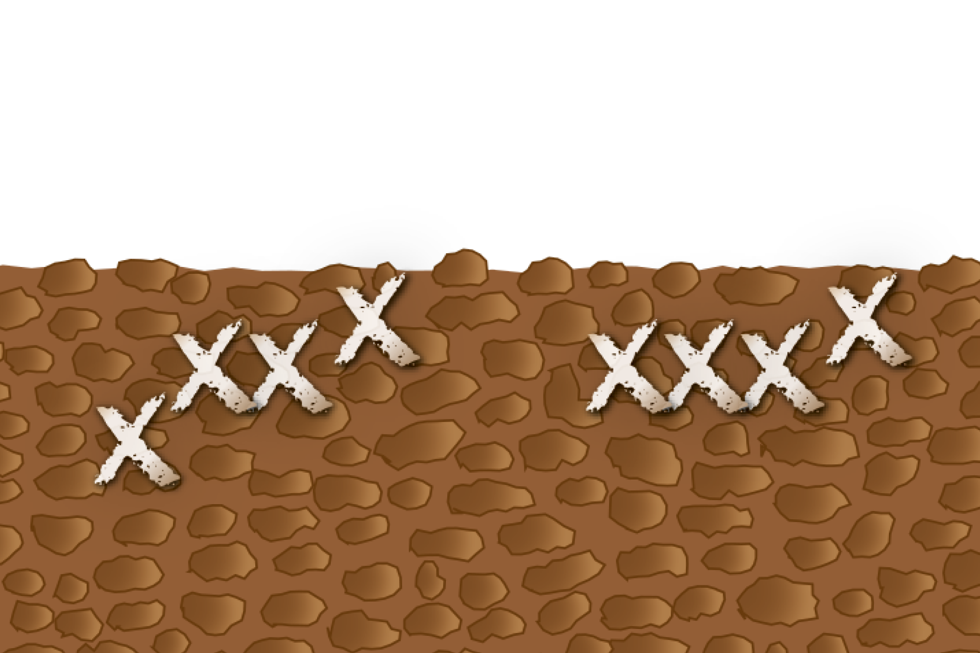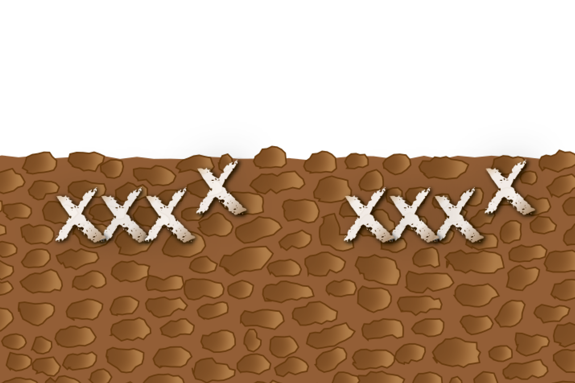 Triple-Shoot mit GreenDrill und Verstellmeißel: 2, 3 oder 4 Ausbringgüter mit Ablage auf 3 Horizonten, zum Beispiel Primera DMC mit GreenDrill und Verstellmeißel für tiefere Ablage in jeder zweiten Reihe