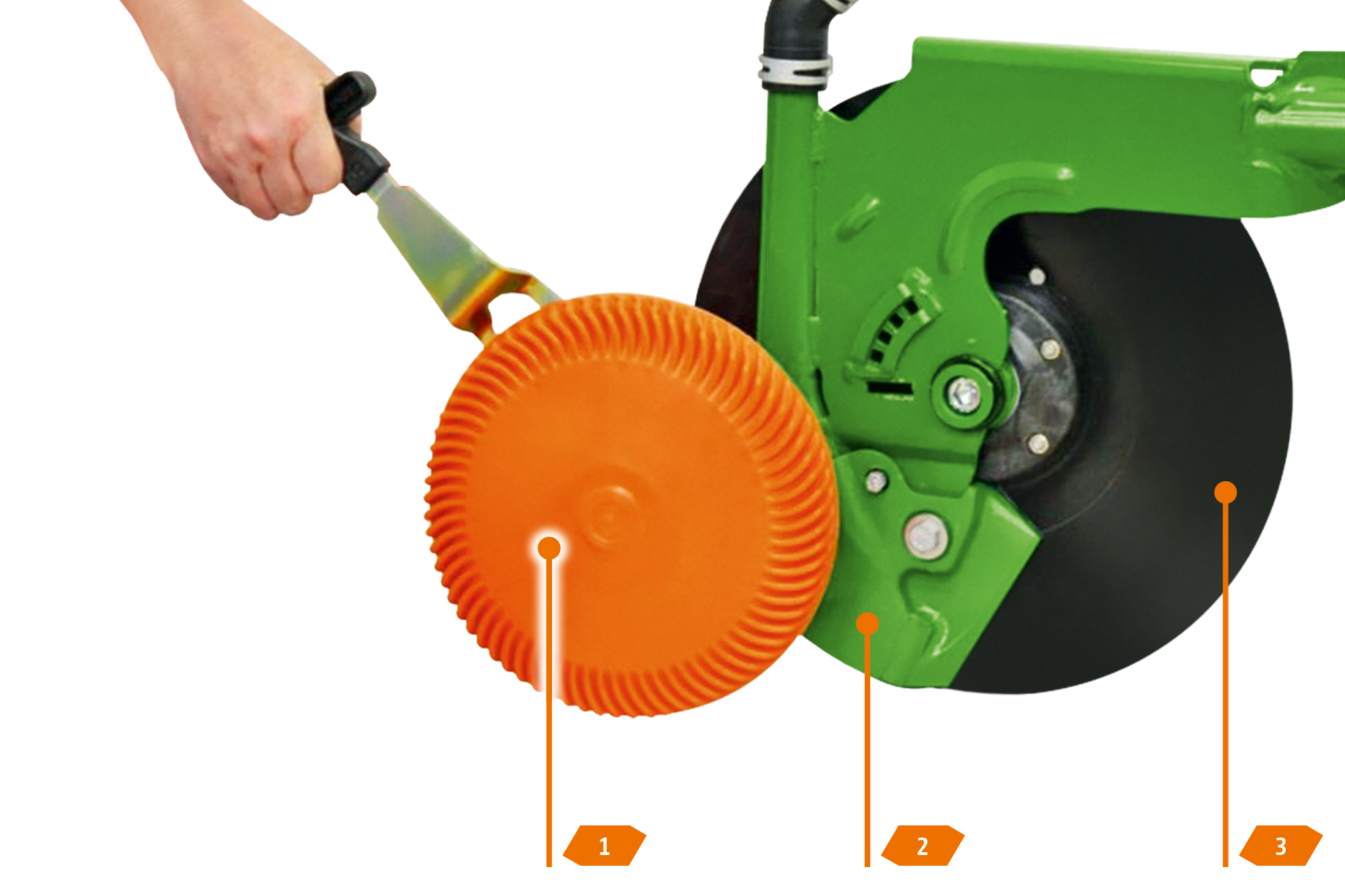 3. Tiefenführungsscheibe Control 10 oder Tiefenführungsrolle Control 25 für eine gleichmäßige Tiefenführung. Das Tiefenführungselement reinigt dabei die Säscheibe aktiv während des Einsatzes