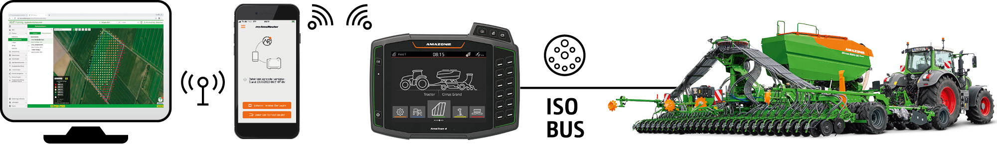 Das von AMAZONE selbstentwickelte ISOBUS-Bedienterminal AmaTron 4 erlaubt die komfortable Steuerung einer jeden ISOBUS-fähigen Landmaschine mit Touch-Bedienung. Das AmaTron 4 ermöglicht dabei alle ISOBUS-Funktionen – mit einem Mehr an Komfort, Bedienerfreundlichkeit und Übersicht. Und doch: Es leistet insbesondere im Zusammenspiel mit AMAZONE Landmaschinen noch mehr und garantiert volle Funktionalität der Präzisionslandwirtschaft.
