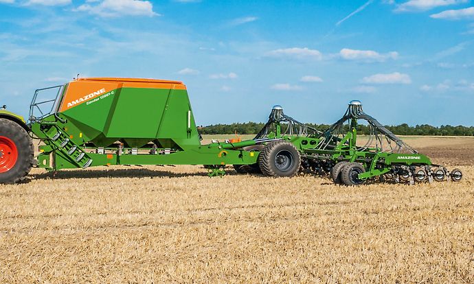 Die Anhängesämaschine Condor von AMAZONE zeigt ihre Stärken besonders in der extensiven Mulchsaat und Direktsaat unter kontinental-trockenen Bedingungen – sie kombiniert hohe Präzision und Flexibilität mit großer Schlagkraft. Mit ihren großen Arbeitsbreiten und dem großzügigen Behältervolumen sät die Condor auch unter härtesten Bodenverhältnissen und extremer Trockenheit dank der ConTeC pro-Zinkenschare zuverlässig.