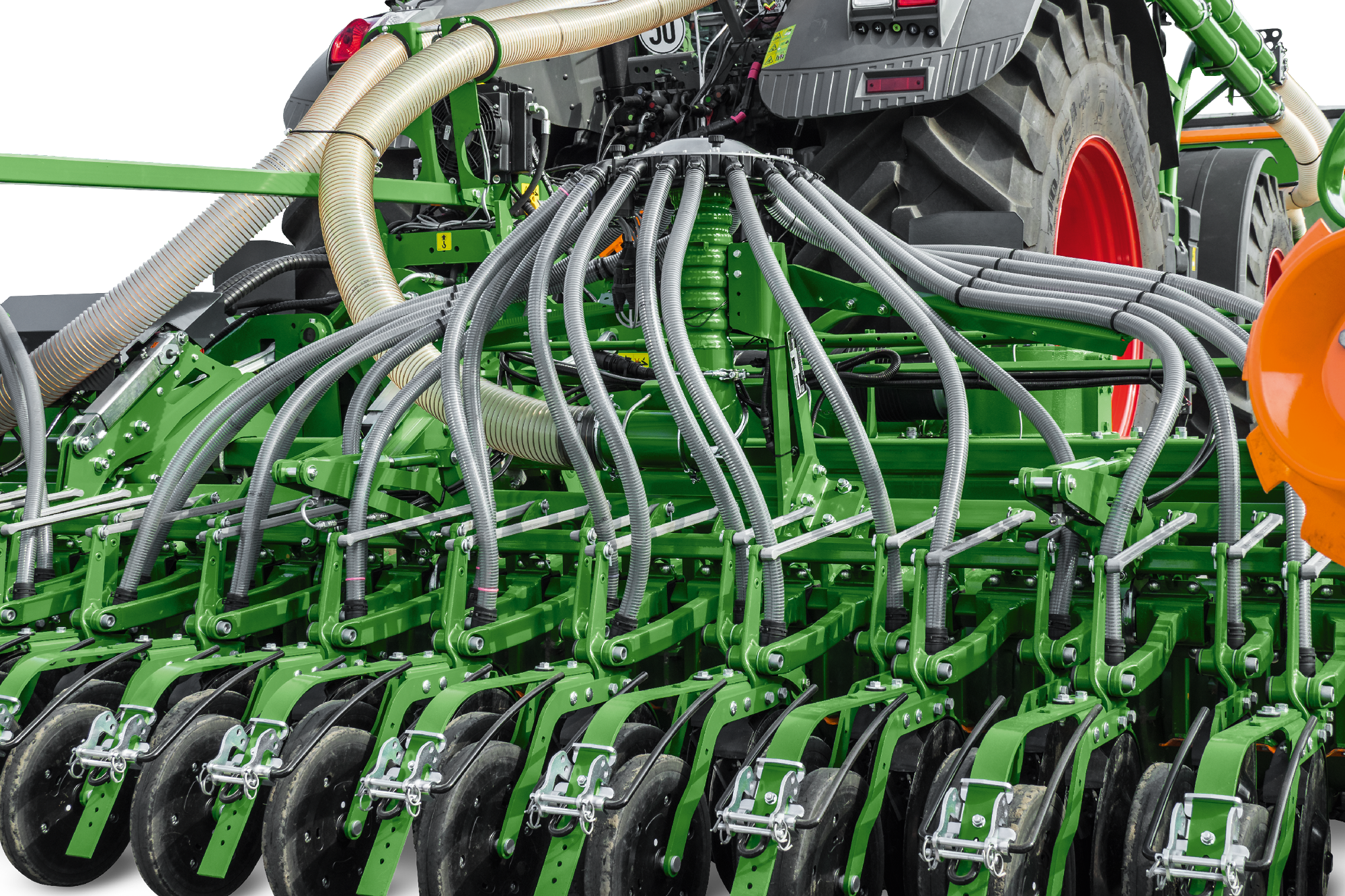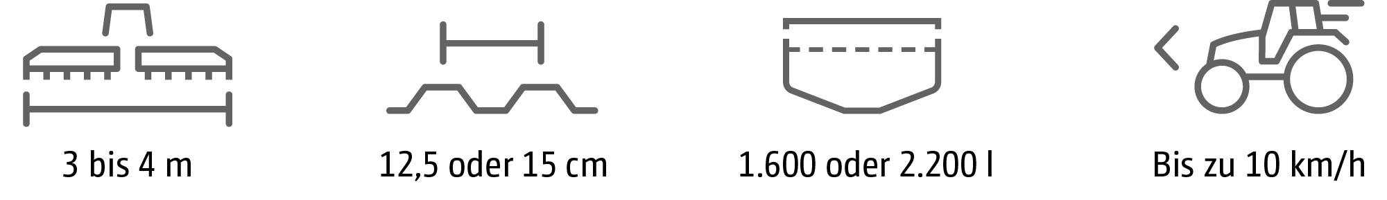 • Geringes Maschinengewicht, gleichmäßig auf die Achsen des Traktors verteilt für optimale Bodenschonung
