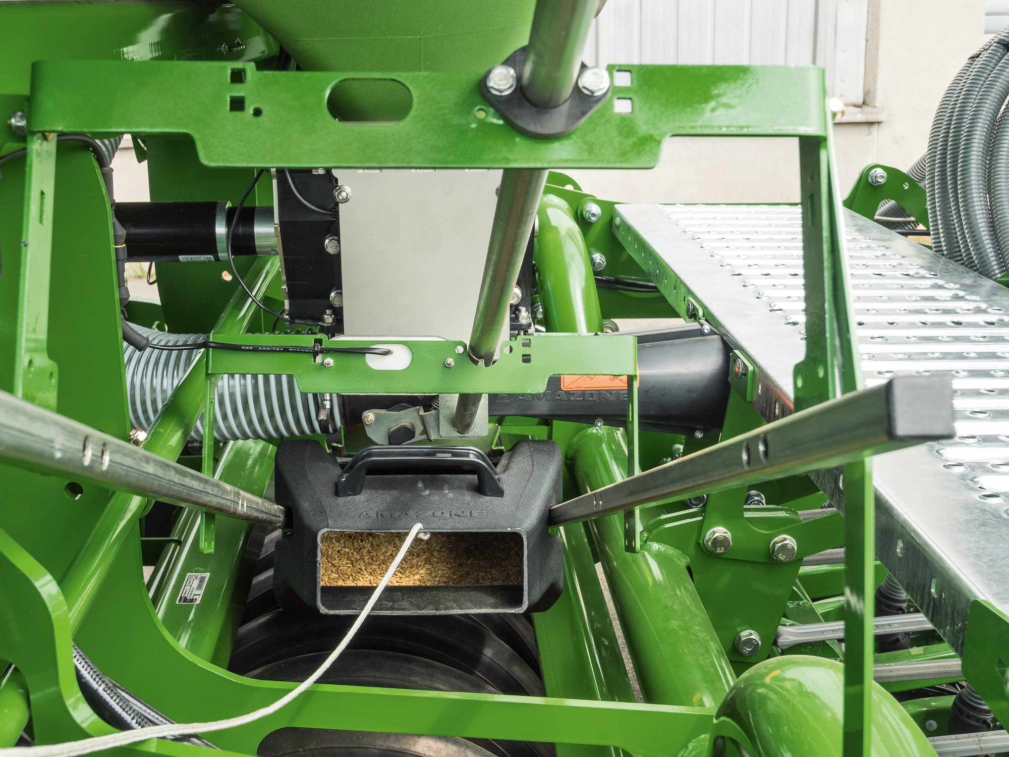 Das Saatgut gelangt während des Kalibrierens sicher und sauber in die Kalibriermulde. Auch das Umfüllen in den mitgelieferten Falteimer geht schnell, einfach und komfortabel. Nach dem Kalibrieren wird die Kalibriermulde einfach mit der Öffnung nach unten in der Parkposition geparkt.