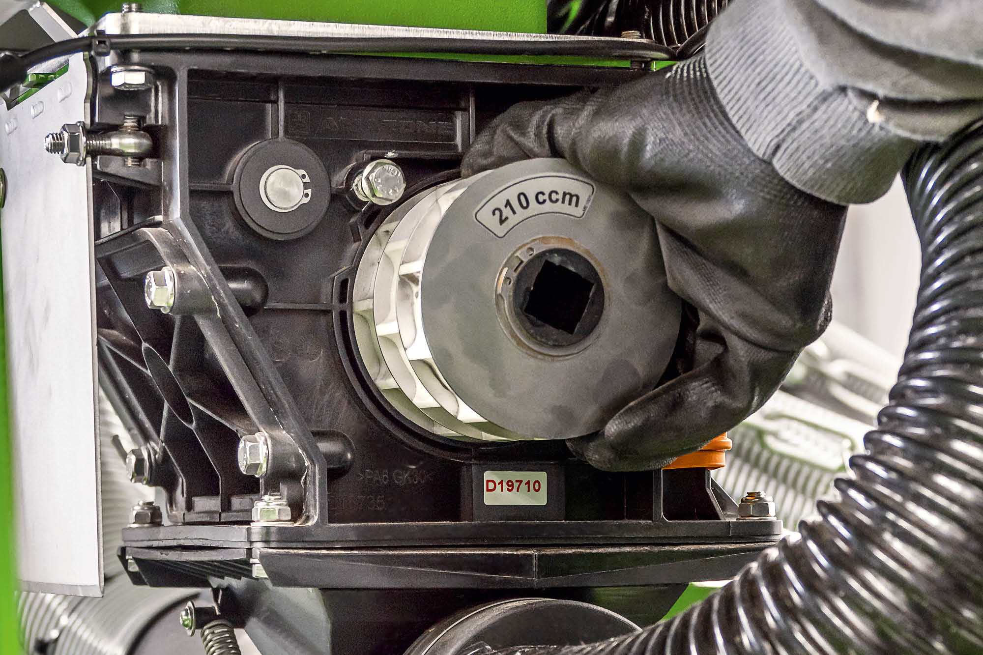 Die Dosierung des Saatgutes erfolgt über den elektrisch angetriebenen Dosierer. Der elektrische Antrieb ermöglicht eine einfache Einstellung der Saatmengen über das ISOBUS-Terminal in der Traktorkabine. Alternativ kann der elektrische Antrieb vollautomatisch über Applikationskarten gesteuert werden. Darüber hinaus sind das Kalibrieren per Knopfdruck und ein Vordosieren in Feldecken möglich.