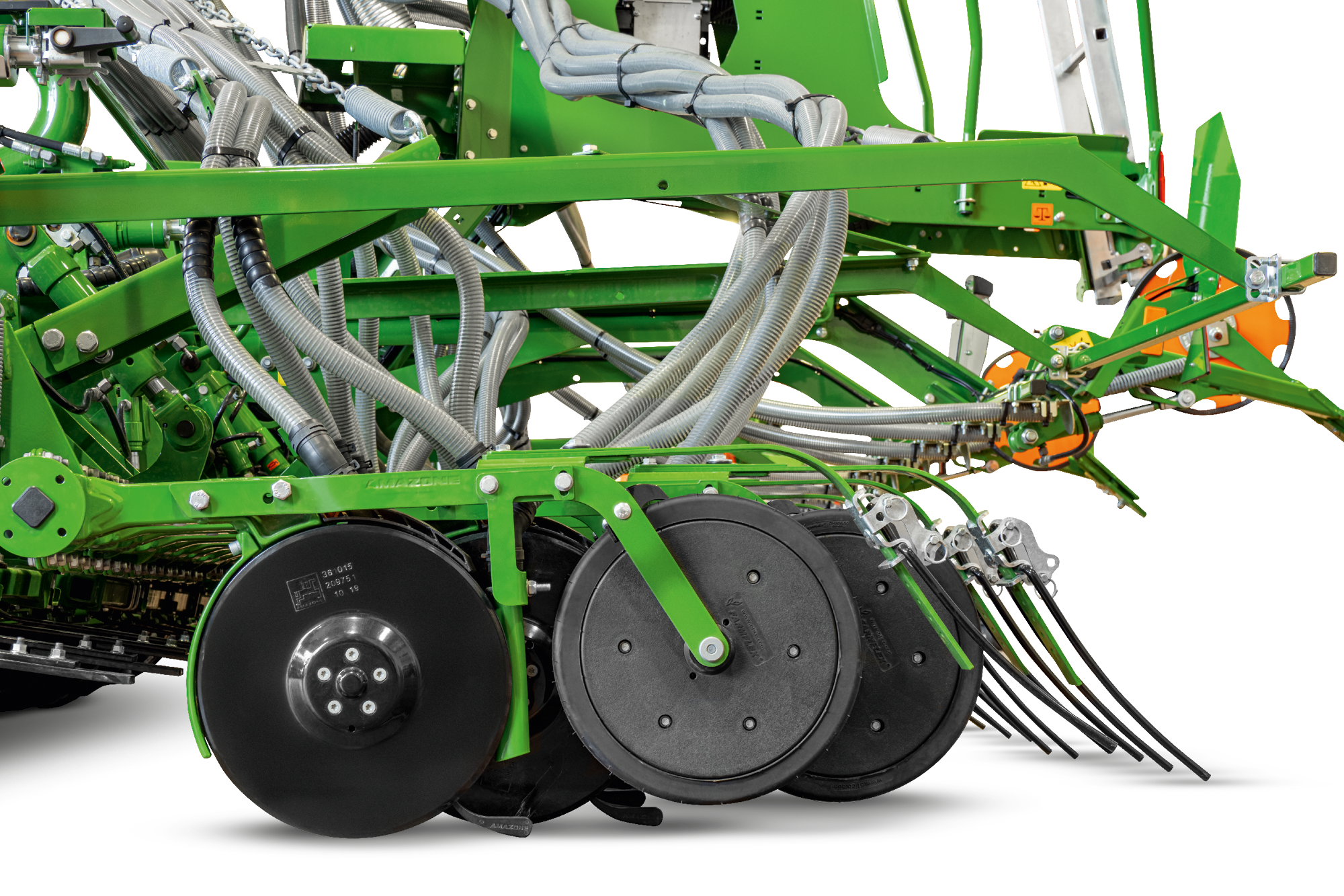 - Breitflächige Ausbringung über Prallteller, über Särohre zwischen den Scharen oder über einen zweiten Auslauf am TwinTeC plus-Schar