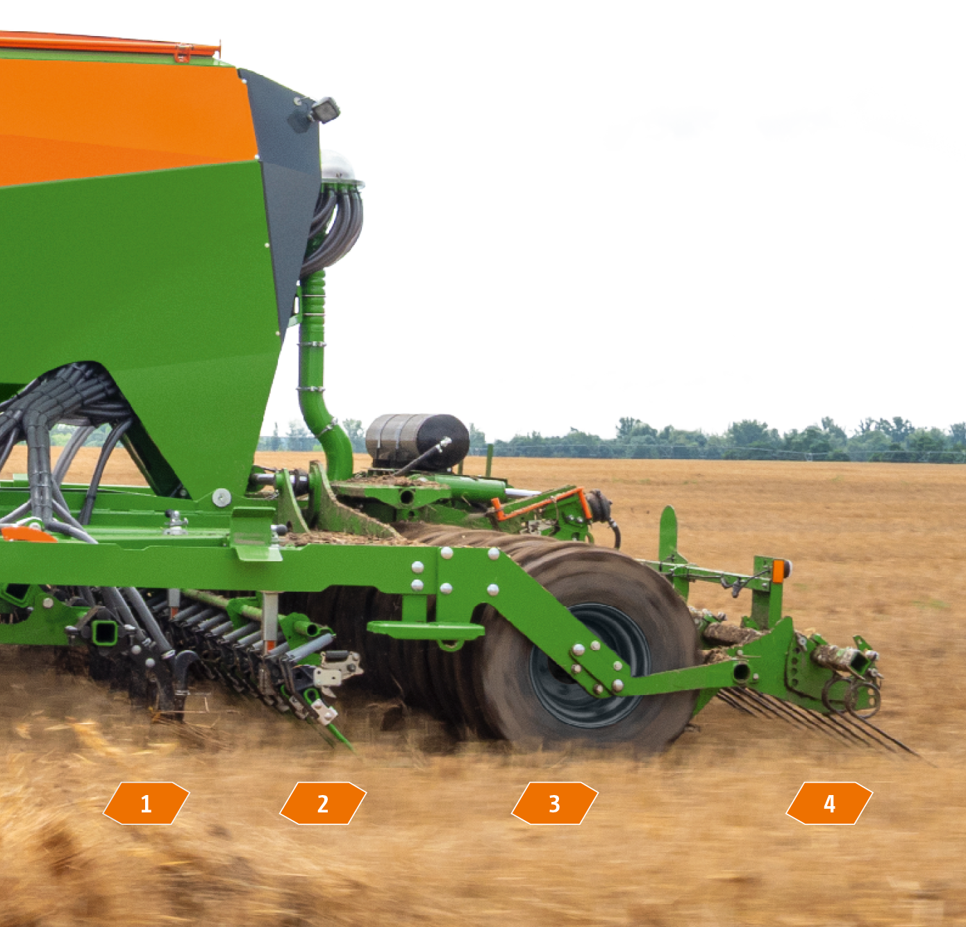 Die nachlaufende Keilringwalze mit Matrixreifenprofil verfestigt den Boden der geschlossenen Säfurche genau über dem abgelegten Saatgutkorn. Das optimiert den Bodenschluss und ermöglicht gleichmäßige Feldaufgänge auch unter trockenen Bedingungen. Dank gezielter Rückverfestigung werden beste Voraussetzungen für eine gute Jugendentwicklung auf trockenen und steinigen Böden geschaffen.