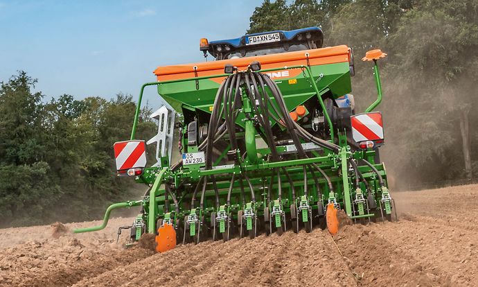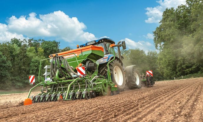 Kombination der Saatbettbereitung, der Saat und der Applikation von Startdünger in die Säfurche für wirtschaftliches, schlagkräftiges Arbeiten in einer Überfahrt bei Arbeitsgeschwindigkeiten von bis zu 15 km/h. Große Behälter und optionale Erweiterung mit Frontanbaubehälter FTender reduzieren Nebenzeiten.