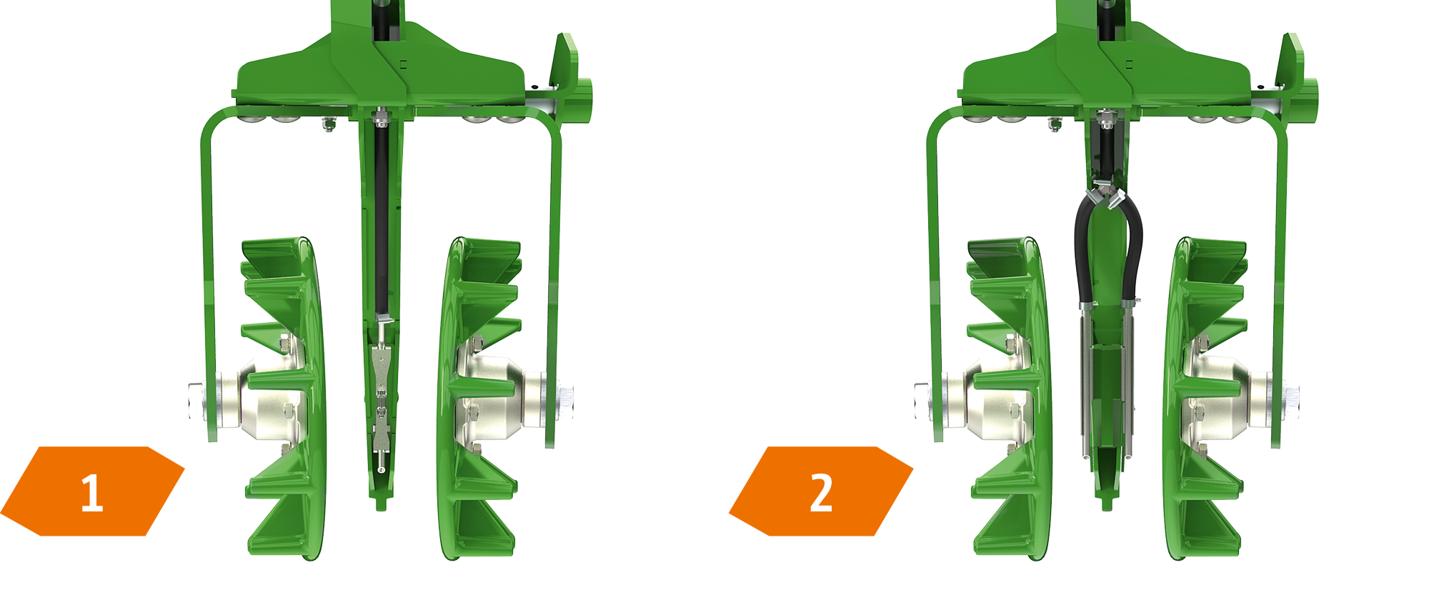 Der Flüssigdünger wird über Schläuche zu den Scharen der Sämaschine gepumpt. Die Düngerschläuche sind sauber verlegt und mit einem Schutzmantel gegen Steinschläge und Beschädigungen geschützt. Der Flüssigdünger wird über einen speziellen Auslauf am Säschar abgegeben. Um ein Nachtropfen am Vorgewende zu verhindern, verfügt jeder Auslauf über eine eigene Tropfstoppmembran. Zudem verfügt jeder Auslauf, je nach Ausbringmenge über eine entsprechend große Dosierscheibe.