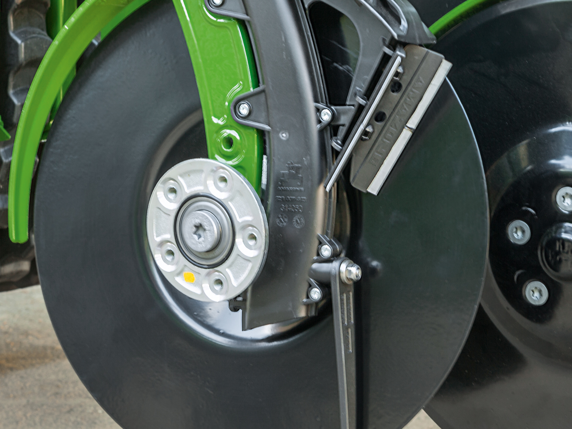 Ausgestattet mit dem leistungsfähigen TwinTeC-Doppelscheibenschar bietet die Sämaschine ein präzises und robustes Doppelscheibenschar. Mit 340 mm Scheibendurchmesser erlaubt das Schar bei einem Schardruck von 60 kg eine sehr präzise und saubere Saatgutablage auch bei hohen Geschwindigkeiten und auf wechselnden Böden. Dank der Führung des Schars im Parallelogramm, können Schardruck und Ablagetiefe unabhängig voneinander eingestellt werden, sodass eine optimale Saatgutablage sichergestellt wird. Auch unter schwierigsten Bedingungen glänzt das Schar mit seiner Laufruhe.