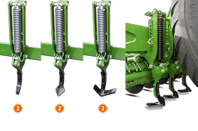 Aufgabe der Sämaschinen-Spurlockerer ist das Lockern festgefahrener Spuren hinter den Sämaschinenreifen. Die Stellung der Sämaschinen-Spurlockerer kann horizontal und vertikal eingestellt werden. Die spezielle Kinematik der Lockerer sorgt für eine gleichbleibende Federkraft über die gesamte Auslenkung. Zur Scharauswahl stehen das Schmalschar, das Herzschar und das Flügelschar.