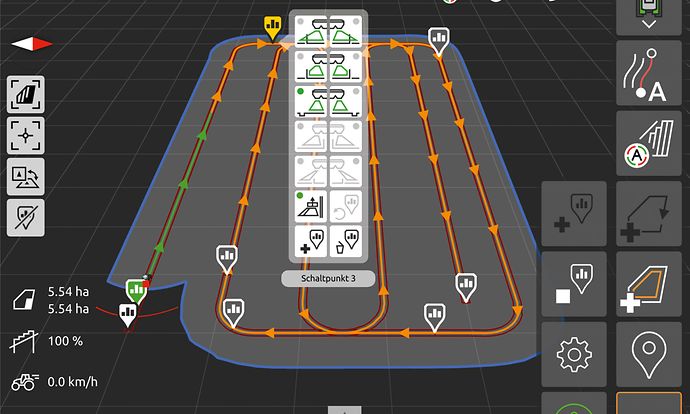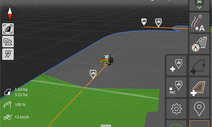 Bei erstmaliger Feldüberfahrt mit dem Düngerstreuer werden beispielsweise vom erfahrenen Betriebsleiter mit dem System GPS-ScenarioControl alle Schaltpunkte sowie die Fahrtroute und Fahrtrichtung nach Betätigen der record-Taste automatisch aufgezeichnet. Die Schaltpunkte werden übersichtlich auf der Karte markiert und die Fahrtrichtung durch Richtungspfeile visualisiert. Beim Düngerstreuer liegen die Streumodi Grenz, Graben- und Randstreuen sowie das einseitige Streuen in das Feldinnere am Vorgewende (HeadlandControl) im Fokus. GPS-ScenarioControl ist im ISOBUS-Bedienterminal AmaTron 4 integriert und lässt sich über die Displayerweiterung AmaTron Twin abbilden und bedienen.