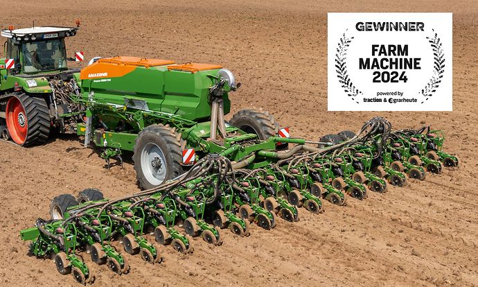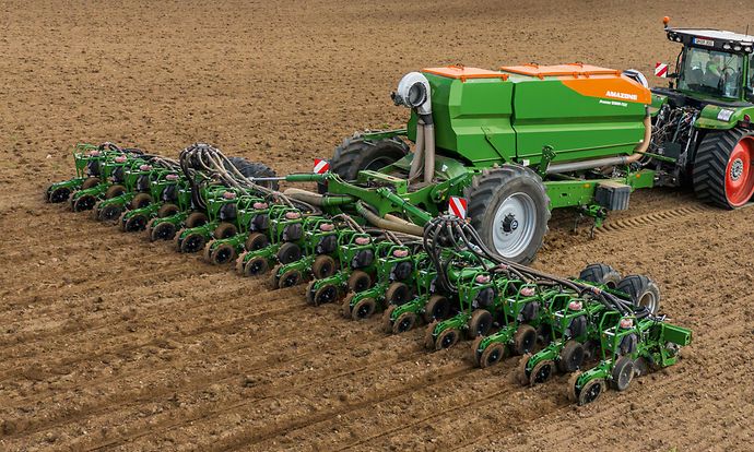 AMAZONE erweitert jetzt das Programm der Einzelkorn-Sätechnik um die gezogenen Produkttypen Precea 9000-TCC und 12000-TCC mit 9 und 12 m Arbeitsbreite. Die speziell für Lohnunternehmen und Großbetriebe entwickelte Variante besticht durch die leistungsstarke Überdruckvereinzelung, große Behältervolumina sowie das innovative Saatgut-Zuführungssystem Central Seed Supply. Die sehr präzise Saatgutablage sorgt für hohe Feldaufgänge auch bei hohen Arbeitsgeschwindigkeiten von bis zu 15 km/h.