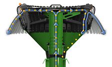 Ein weiterer Vorteil ist die optional verfügbare Bordhydraulik mit Zapfwellen-Aufsteckpumpe. Diese ermöglicht den Betrieb der Maschinen auch mit Traktoren, die über eine geringe Hydraulikleistung verfügen. Unter feuchten Luftbedingungen sorgt die optionale Luftvorwärmung für einen störungsfreien Betrieb. Sie erhöht die Temperatur im Förderstrom um etwa 8 °C und reduziert Kondensatbildungen, wodurch ein Verkleben von Beizmitteln oder Düngerstaub verhindert wird.