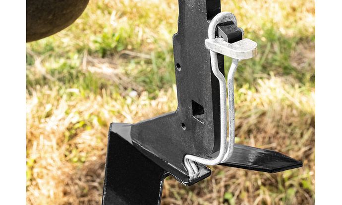 Durch die Hebelkraft des Federhebels werden die Hackmesser selbst unter härtesten Bedingungen zuverlässig am Scharstiel gehalten.