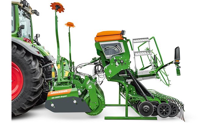 Jetzt bietet AMAZONE für die Cataya Special das TwinTeC special-Doppelscheibenschar an. Die kurze und kompakte Cataya Special ist für Traktoren ab 120 PS konstruiert und mit dem TwinTeC special-Doppelscheibenschar jetzt die perfekte Maschine bei der Pflug- und Mulchsaat für kleinere und mittlere Betriebe. Das einarmgeführte Doppelscheibenschar mit 340 mm Durchmesser sorgt mit einem maximalen Schardruck von bis zu 40 kg für einen ruhigen Lauf. Die Tiefenführungsrolle Control 50 hält das Schar gleichmäßig in der Tiefe außerdem wird das Saatgut exakt im Boden platziert und angedrückt. Bei Fahrgeschwindigkeiten bis 10 km/h werden eine sehr gleichmäßige Längsverteilung in der Reihe, eine präzise Tiefenführung und hervorragende Feldaufgänge erzielt.