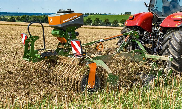 Neu im Programm führt AMAZONE außerdem die vorlaufende Messerwalze. Mit der Kombination aus Catros mit X-Cutter-Disc und Messerwalze wird sogar ein mehrdimensionales Schnittbild erreicht und somit die Intensität der Zerkleinerung von Stoppeln, Stroh und Zwischenfrüchten in Längs- und Querrichtung erhöht. Dadurch wird der Rotteprozess noch weiter gefördert und die Übertragung von Krankheiten auf die Folgefrucht reduziert.
