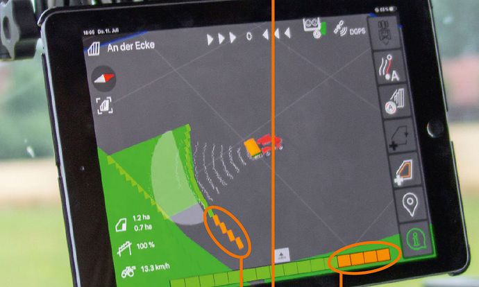 Die Kombination aus HeadlandControl und der neuen Teilbreitenschaltung führt am Vorgewende zu einer optimierten Verteilung.