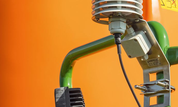 AmaSense Weather ist ein Sensor, welcher an den AMAZONE Pflanzenschutzspritzen nah am Pflanzenbestand die aktuelle Temperatur und Luftfeuchte erfasst.