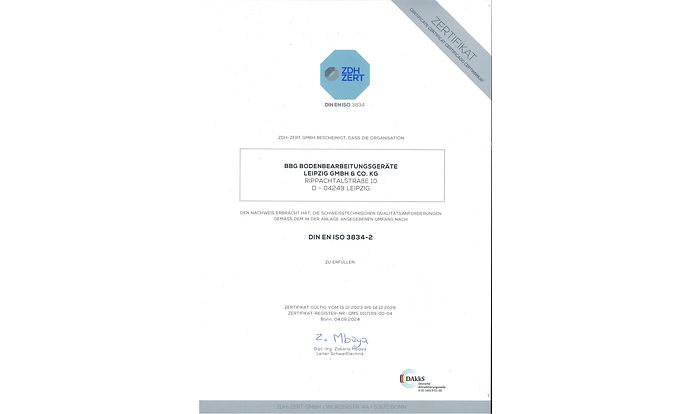 Schweißen ist eine der Kernkompetenzen von AMAZONE. Mit der Zertifizierung nach der ISO 3834 wollen wir diese Kompetenz weiter ausbauen und die Qualität der Erzeugnisse sowie der zugehörigen Prozesse kontinuierlich verbessern.