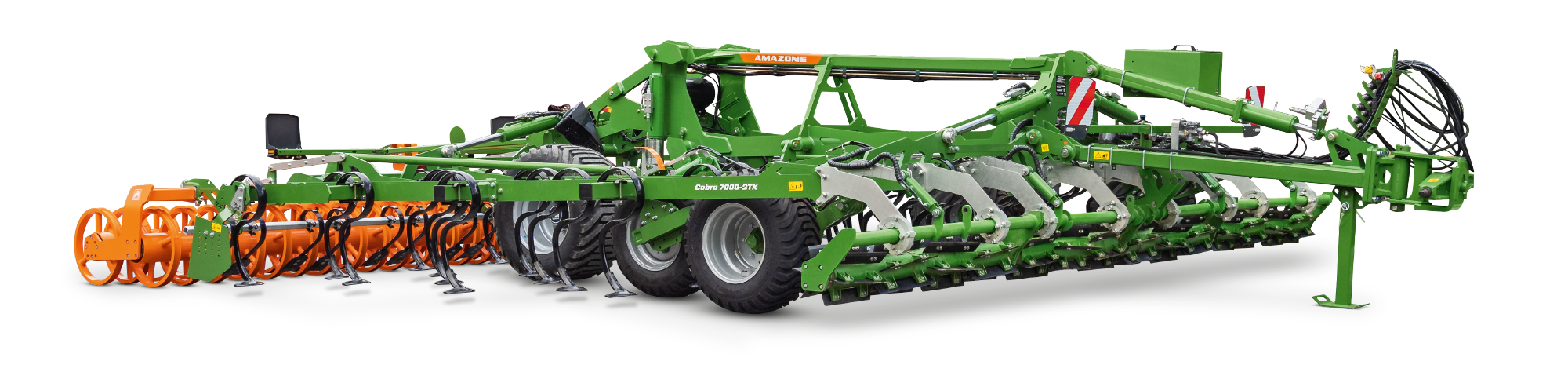 - Flaches und mitteltiefes Arbeiten mit ganzflächigem Schnitt dank Gänsefußschar auf bis zu 7 m Arbeitsbreite