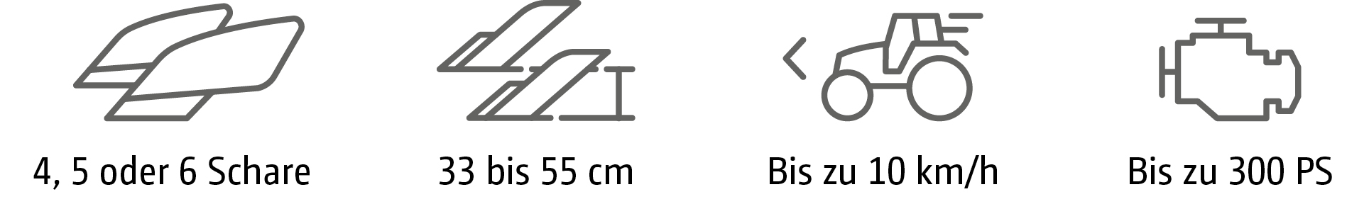 - Breite Furchenräumung durch modernes Pflugkörperkonzept