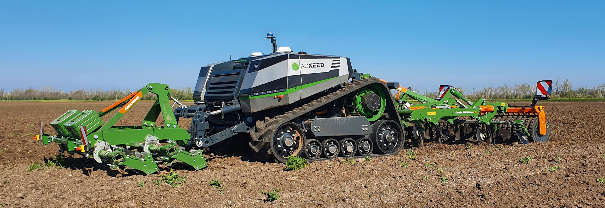 Das niederländische Start-up AgXeed bietet ein intelligentes, nachhaltiges und vollständig autonomes Bewirtschaftungssystem mit skalierbarer Hardware, virtuellen Planungstools und umfassenden Datenmodellen und gehört damit heute zu den führenden Unternehmen auf diesen Gebieten in Europa. Nach der 2020 vorgestellten Raupenversion mit 115 kW folgten 2021 der dreirädrige AgBot für den Obst- und Weinbau und kürzlich der Vierrad-AgBot mit jeweils 55 kW. Alle Fahrzeuge werden dieselelektrisch betrieben. Gemeinsam mit AMAZONE und den weiteren Partnern beabsichtigt AgXeed, die Entwicklung von effizienten und ganzheitlichen landwirtschaftlichen Prozesslösungen in den kommenden Jahren weiter zu beschleunigen.